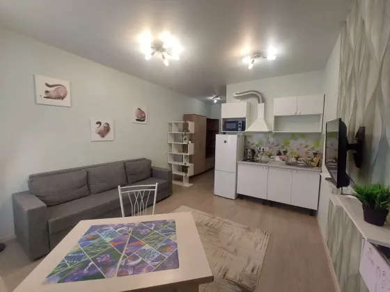 В избранное Студия СМР ул. Заполярная 10/16 м/к 24 м ремонт, мебель 3300000 р